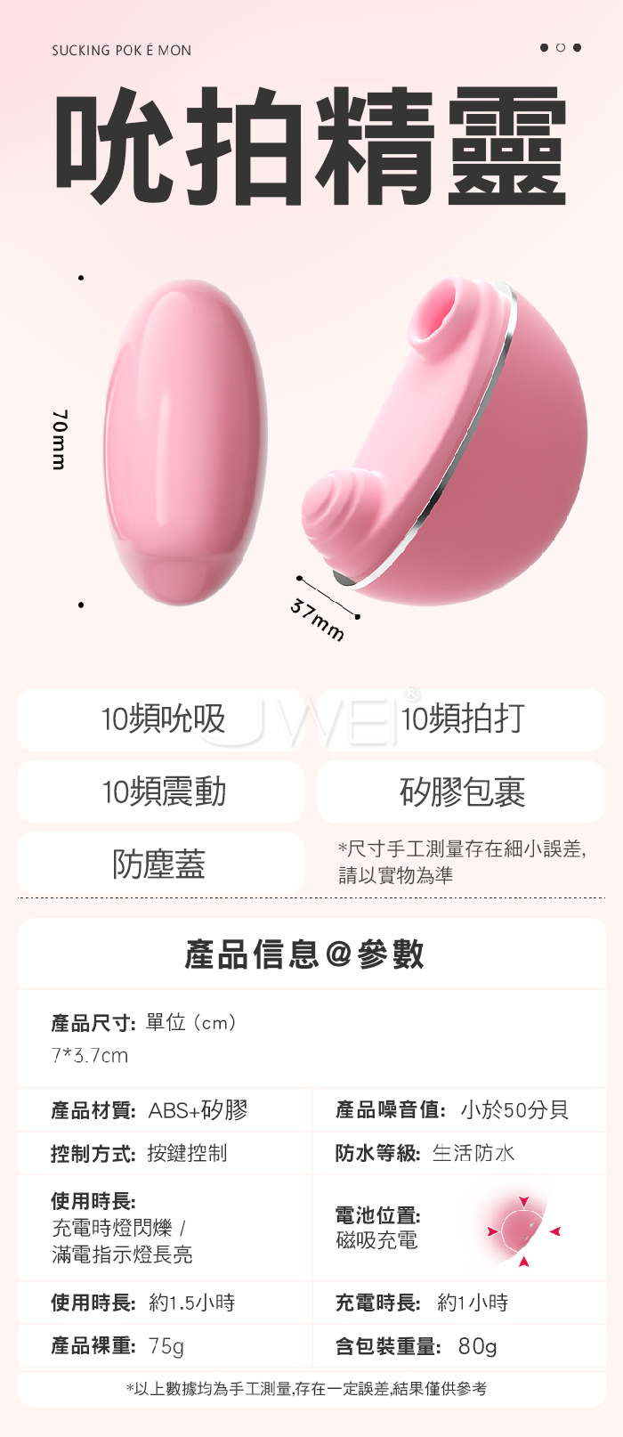 ■功能:10頻吮吸、10頻震動、10頻拍打