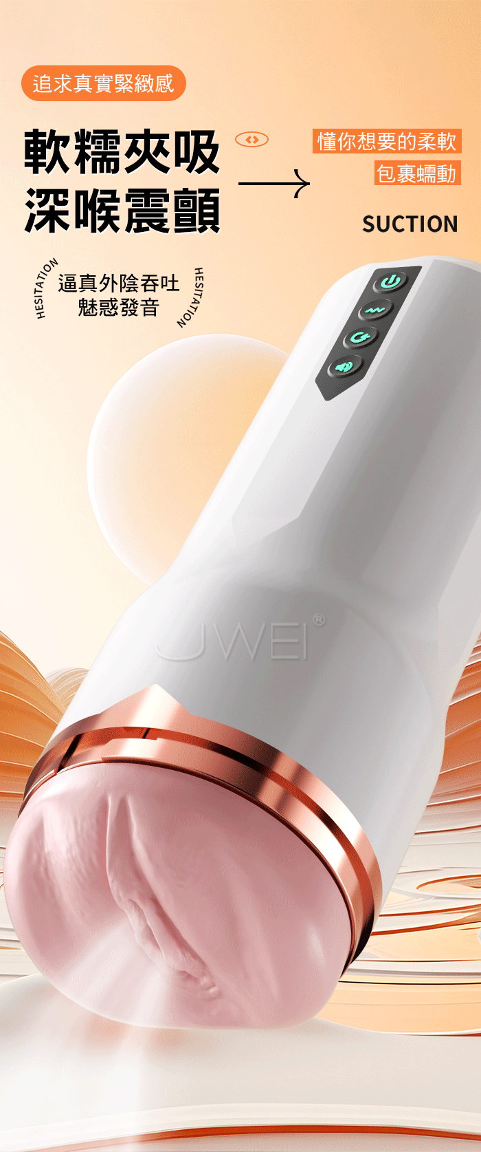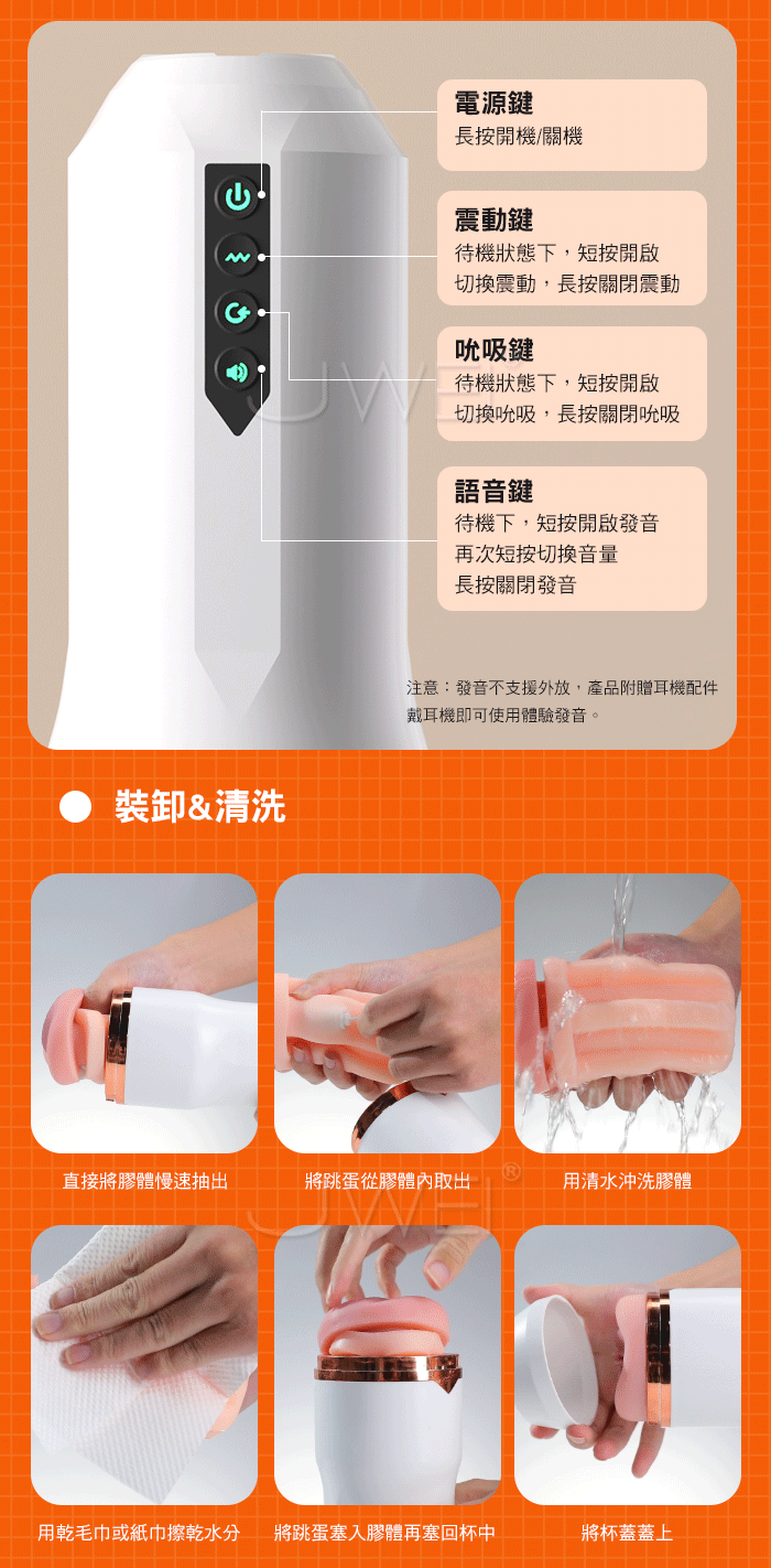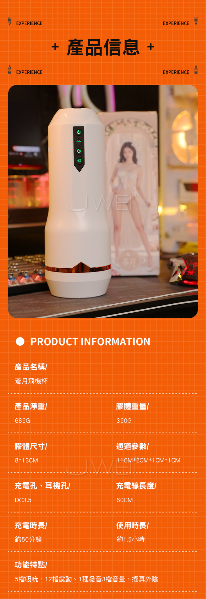 被深吸!被緊含!蒼月電動飛機杯,超真實緊緻感,懂你想要的柔軟! 軟糯夾吸,擬真外陰通道,越深入越驚喜,酥麻入魂 強勁震顫,內壁蠕動,恍若騎坐搖擺,深喉包裹欲罷不能 真人錄製,魅惑發音,激情吟叫身臨其境般 ■尺寸:大小詳如圖片標示 ■材質:TPE+ABS ■功能:5檔吸吮、12檔震動、1種發音3檔音量、擬真外陰