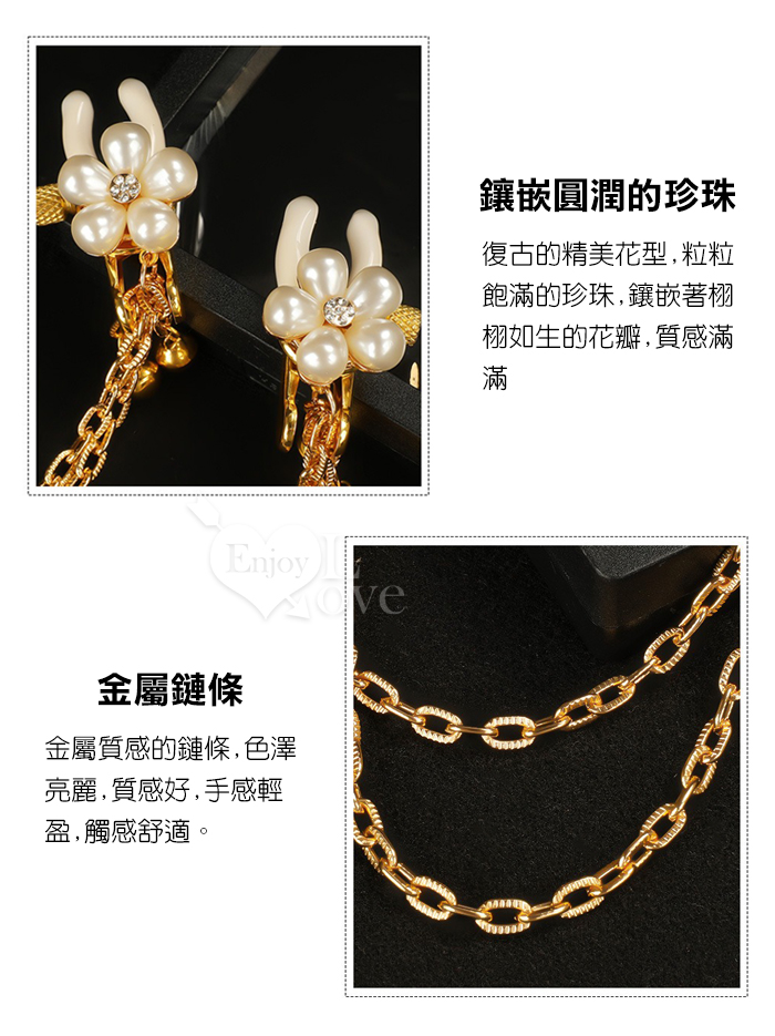 【乳の調戲】高檔珍珠花瓣鈴鐺乳夾~女用調教乳頭鏈條夾子﹝一對裝﹞