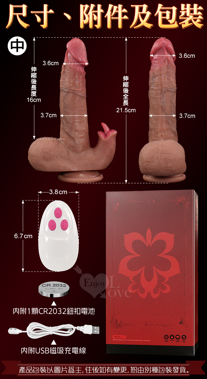 樂翻天Ⅱ代.伸縮衝撞+舌戰撩震 無線遙控超仿真肉感描青筋血管老二棒-中﹝9頻雙調控+智能加溫+強力吸盤+磁吸充電﹞
