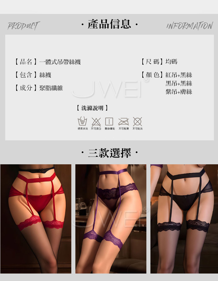 ■內容物:一體式吊帶絲襪*1 ■適穿尺寸:FREESIZE ■彈性:彈 ■未撐開平量尺寸正負誤差1~2cm,1吋=2.54cm ■注意事項:基於保障消費者個人衛生,此貼身衣物恕不接受退換貨。 (如為商品本身暇疵,接受七日內換貨,請勿試穿,謝謝您)