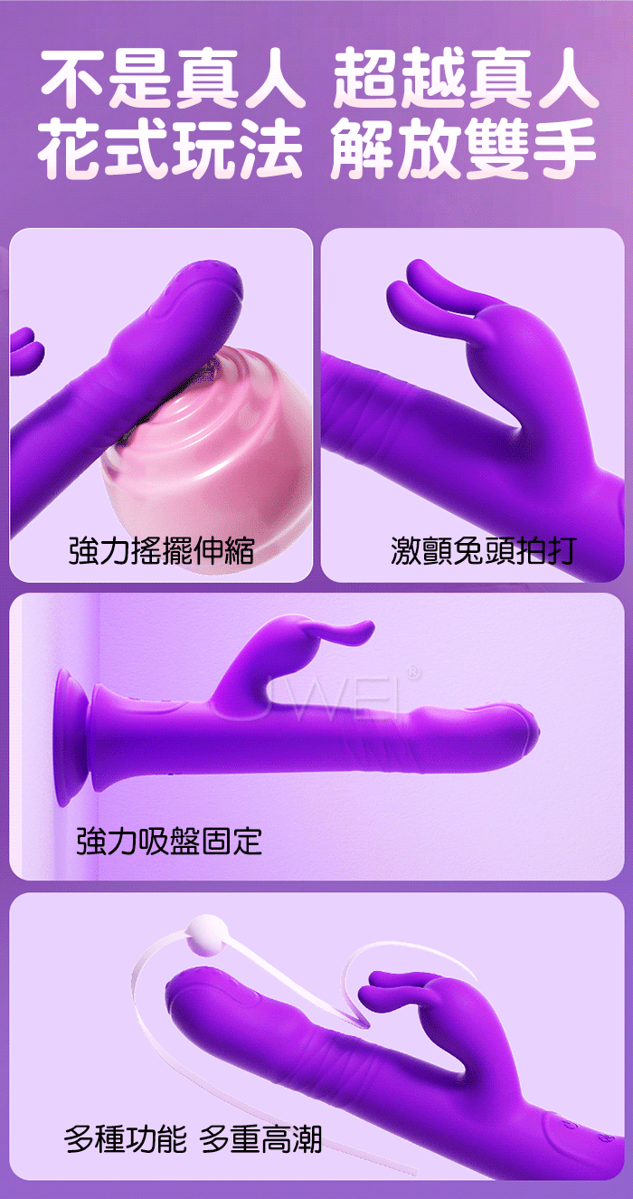 花樣多.10x10頻強力伸縮 G點狂攪 撩撥強震 兔頭拍打 激爽吸盤按摩棒