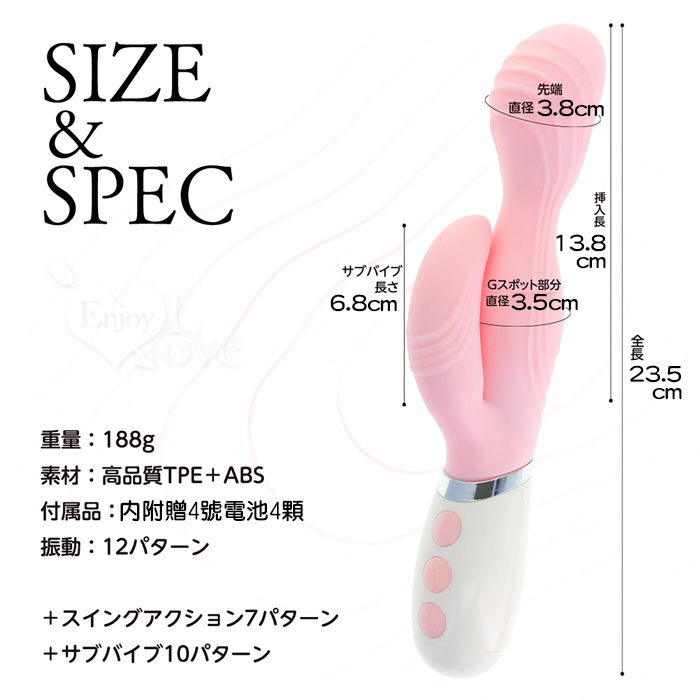 日本NPG.やわらかバイブ 肌感触 12頻頭震+7搖擺+10副震多功能柔和按摩棒-粉