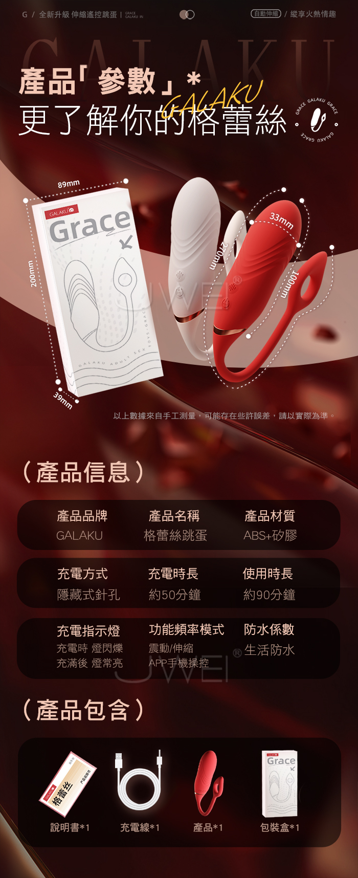 全自動「伸縮」縱享火熱情趣,放肆狂歡! 動感強勁,前戲調情必備!開啟快樂的大門 刺激A點 深入頂蹭,觸底快樂,直激G點 瞬間爆發 產品規格 ■材質: 矽膠+ABS ■規格: 詳如圖片標示 ■功能: 10頻震動、3頻伸縮 、APP智控