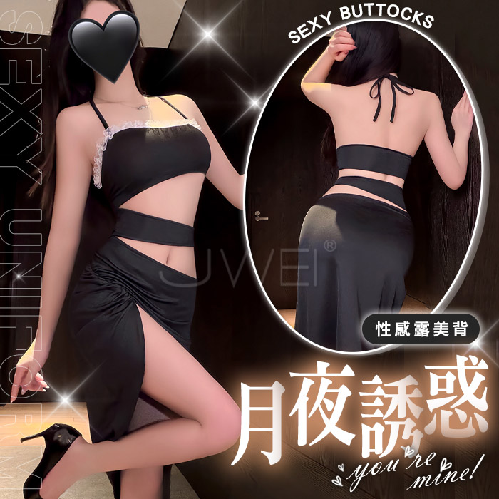 夜診玫瑰.純欲下胸挖空交叉肩帶美背包臀小護士cos套裝【洋裝+T褲】
