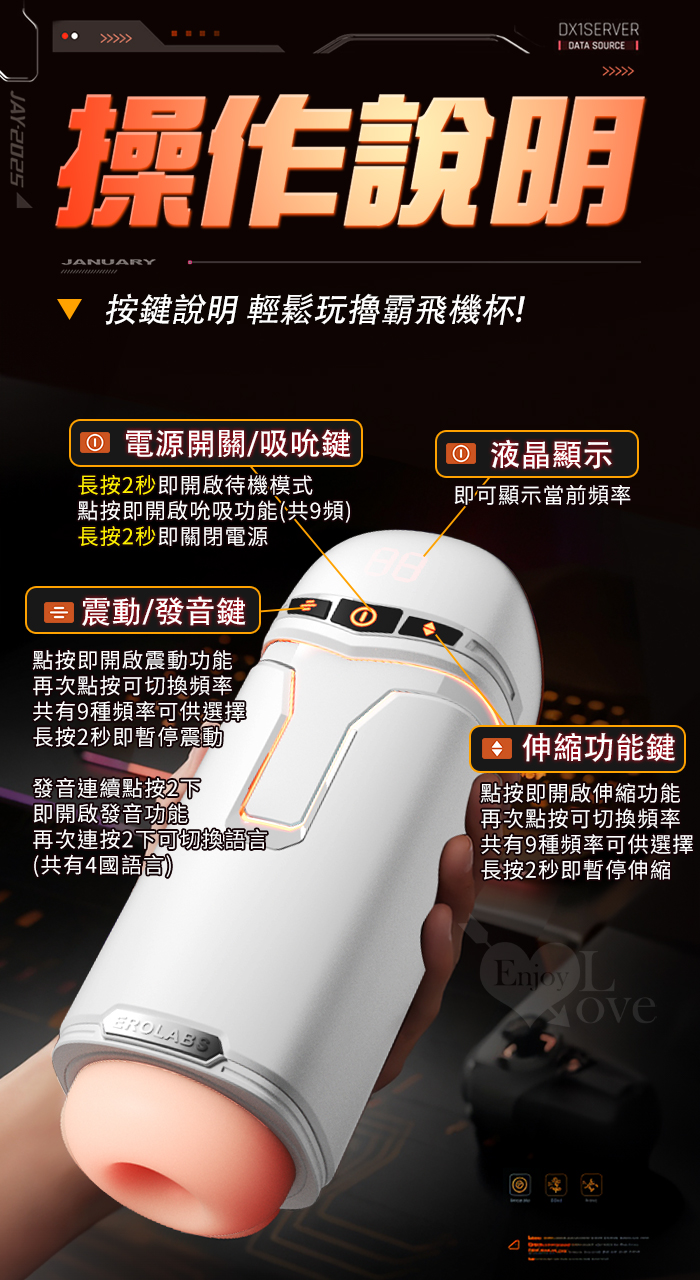 ►您現在的位置:首頁>EROLABS 擼霸全配版 ‧ 智能伸縮/吸吮/震動/語音 緊實肉感自慰鍛練杯﹝液晶數碼9頻伸縮X9頻吸吮X9強震+4國淫聲+耳機﹞白色