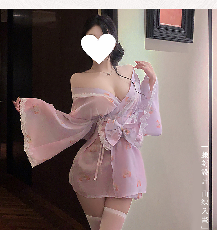 ►您現在的位置:首頁>櫻月兔語.蕾絲滾邊露肩領口可愛兔子印花日系和服套裝【和服+蝴蝶結腰封】