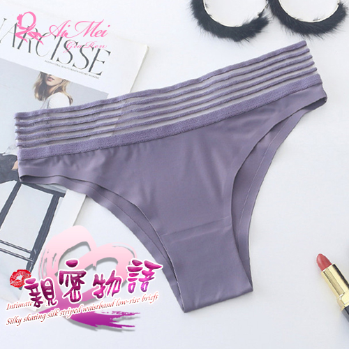 親密物語!絲滑冰絲條紋褲頭低腰三角褲﹝藕紫﹞