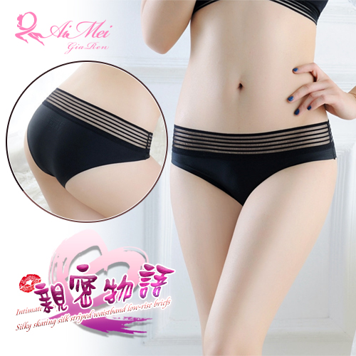 親密物語!絲滑冰絲條紋褲頭低腰三角褲﹝黑﹞