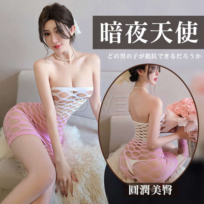 可撕鏤空網紗連身裙|漸層彈力包臀睡衣・交叉肩帶多穿法