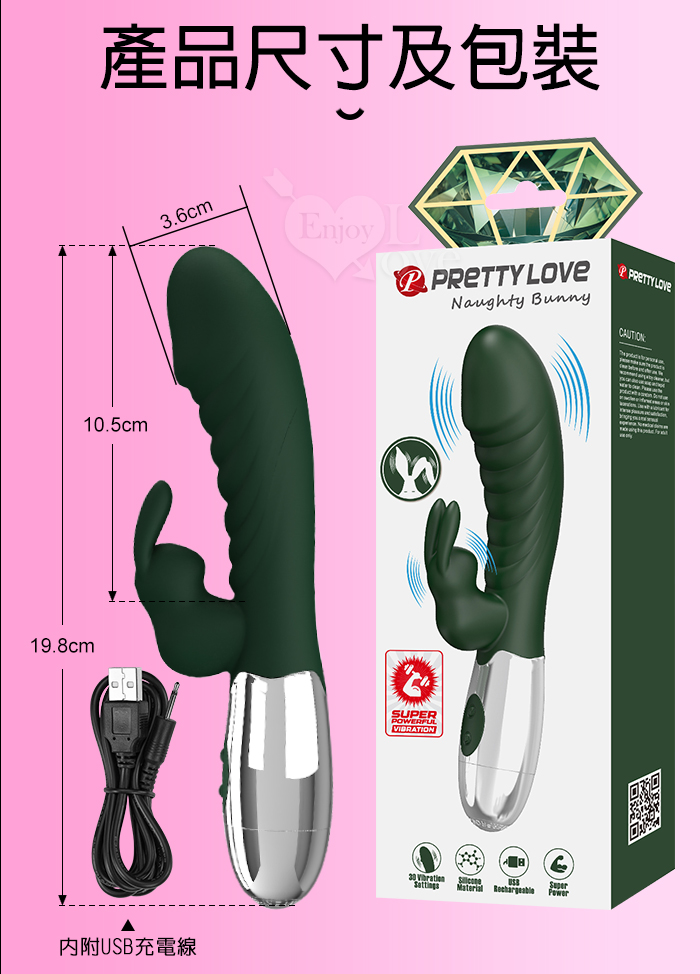| PRETTY LOVE 派蒂菈 ‧ 頑皮兔 內外雙重30頻雙頭同震按摩棒-充電款