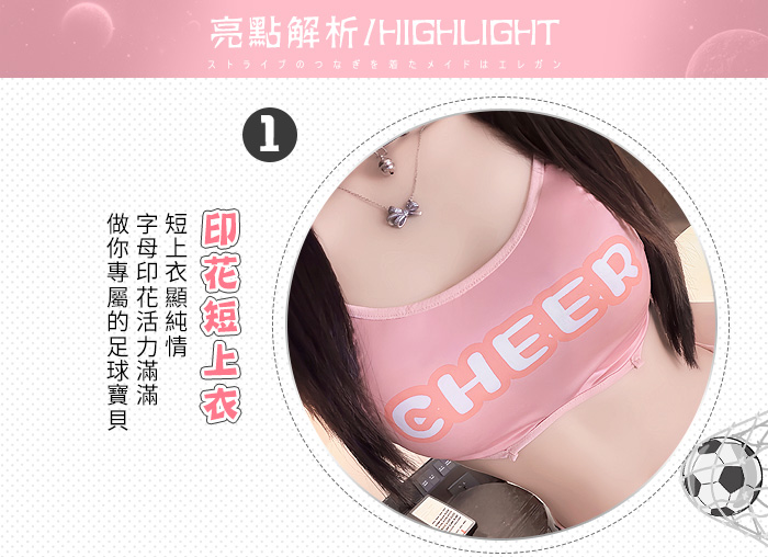 | 啦啦隊足球寶貝套裝|後背鏤空印花短上衣 × 撞色短裙 運動風三件組