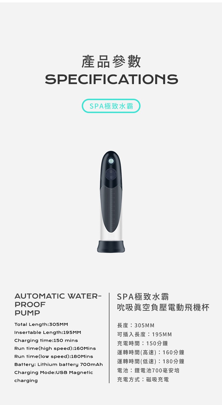 ►您現在的位置:首頁>WATER PUMP水幫浦 全防水真空三段吮吸 輕鬆鍛鍊陰莖幫浦 電動飛機杯 - USB磁吸充電式