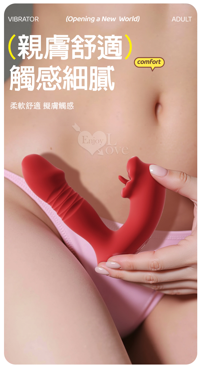 ROSELEX 上舔下頂 入體伸縮舔震三合一 10頻雙馬達貼合穿戴按摩器 - 可手機APP遙控﹝具兩種操控模式﹞紅